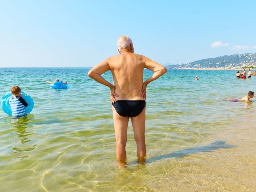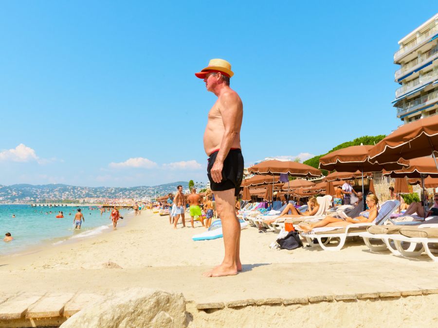 "On a hot afternoon near Antibes, I wandered a public beach looking for Riviera glamour. Instead, I found bored couples walking in silence, men proudly posing in speedos, and a sun-burnt napper blocking a footpath."